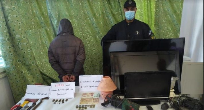كما أسفرت التحريات أن المشتبه فيه من مروج المخدرات حيت ضبط بحوزته على 22 غ من الكيف المعالج على شكل قطع مهيأة للبيع، و مبلغ مالي أزيد من 6 الاف دج، من عائدات البيع أنجز في حقه ثلاثة ملفات جزائية أحيل بموجبها على محكمة تنس.