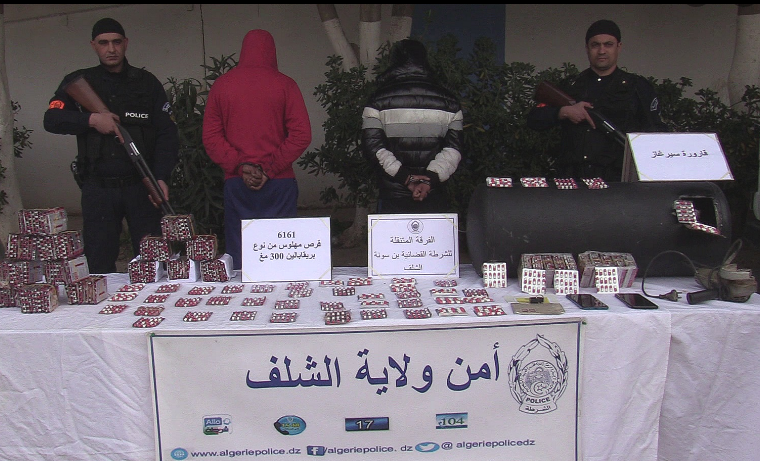 أوقفت الفرقة المتنقلة للشرطة القضائية بن سونة بأمن ولاية الشلف شخصين تبلغ أعمارهما 25 و35 سنة ينشطان ضمن شبكة إجرامية وطنية مختصة في نقل و تخزين و بيع المؤثرات العقلية.