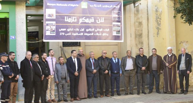تم اليوم افتتاح شباك الصيرفة الاسلامية على مستوى وكالة البنك الوطني الجزائري bna بتنس بحضور مسؤولي البنك و كذا اطارات من الشؤون الدينية و المسؤولين محليا بتنس.